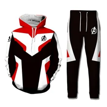 .Images of 2 Pieces Sets Tracksuit Men New Brand Spring 3D Avengers Printed Hooded Sweatshirt+Drawstring Pants Male Patchwork Hoodies 2019