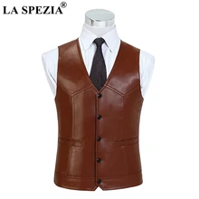.Gallery for LA SPEZIA Brown Waistcoat For Men Genuine Sheepskin Leather Slim Fit Classic Vest Natural Leather Luxury Brand Sleeveless Jacket
