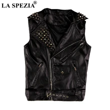 Offer Description for LA SPEZIA Punk Vest Men Biker Black Hip Hop Slim Fit Waistcoat With Belt Male Leather Rivet Zipper Motorcycle Sleeveless Jacket