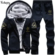 .Gallery for 2019 Thicken Men Tracksuit Set Cardigan Winter Fleece Hooded Men's Jacket+Pants Sweatshirts 2Piece Sets Hoodies Sporting Suit