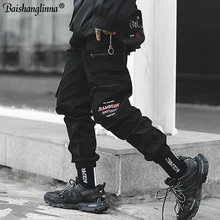 .Gallery of Baishanglinna Men's Side Pockets Cargo Pants 2019 Hip Hop Casual Male Tatical Joggers Trousers Fashion Casual Streetwear Pants