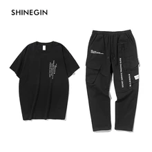 .Pictures for SHINEGIN Men's set funny t shirts harajuku printed t shirt men 2019 ribbons casual cargo pants homme Elastic Trousers 119S/061W