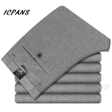 .Images for ICPANS Summer Thin Linen Pants Mens Solid Casual Formal Business Trousers Mens Clothing Slim Fit Trousers Male Plus Size 40